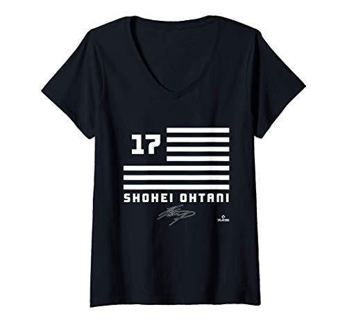 Womens Shohei Ohtani Flag Name V-Neck T-Shirt