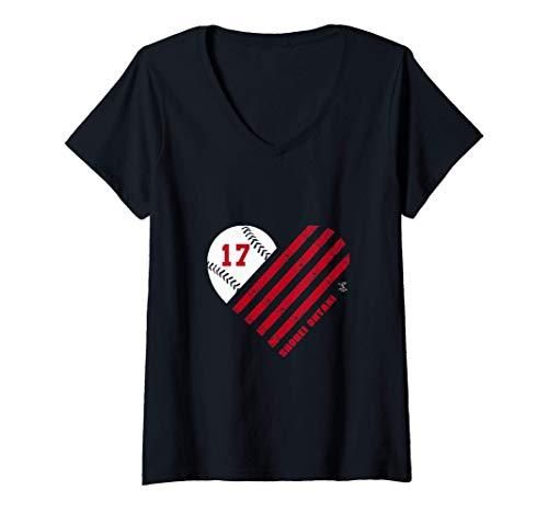 Womens Shohei Ohtani Baseball Striped Heart Gameday V-Neck T-Shirt