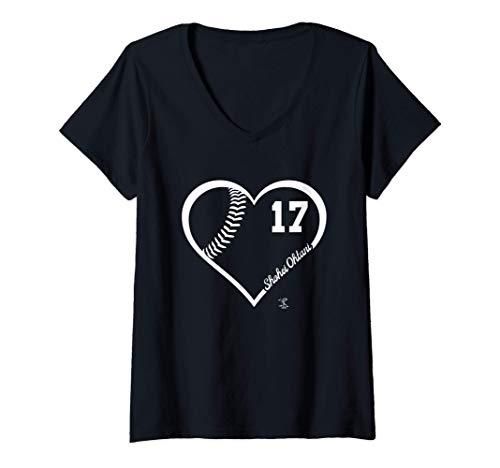 Womens Shohei Ohtani Player Heart Number Gameday V-Neck T-Shirt