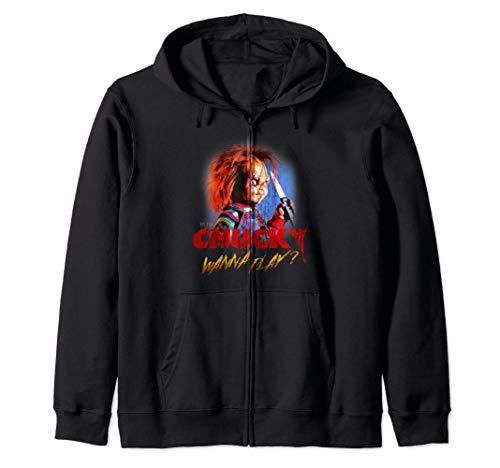 Child's Play Chucky Wanna Play Creepy Portrait Zip Hoodie