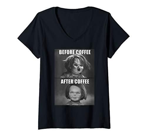 Womens Child's Play Chucky Before Coffee After Coffee V-Neck T-Shirt