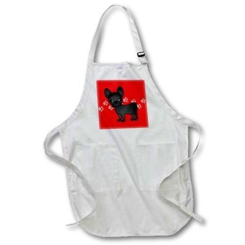 Janna Salak Designs Dogs??キュートなブラックブリンドルフレンチブルドッグとPawprints??エプロン White-Medium a