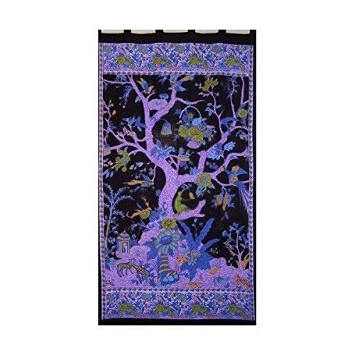 Tree of Lifeタブトップcurtain-drape-door panel-black/パープル