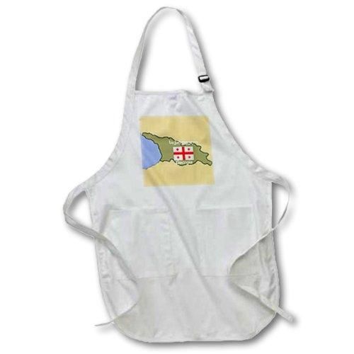 3drose Apr 39209?_ 1マップとの国旗ジョージア、国、英語でwithジョージア印刷フル長エプロンポケット付き、22?by 30インチ、ホワイト