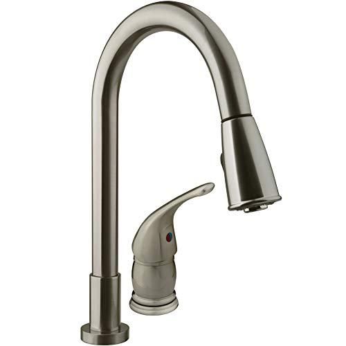 Dura Faucet DF-NMK503-SN Pull-Down RV Kitchen Faucet with Side Lever - For RV's