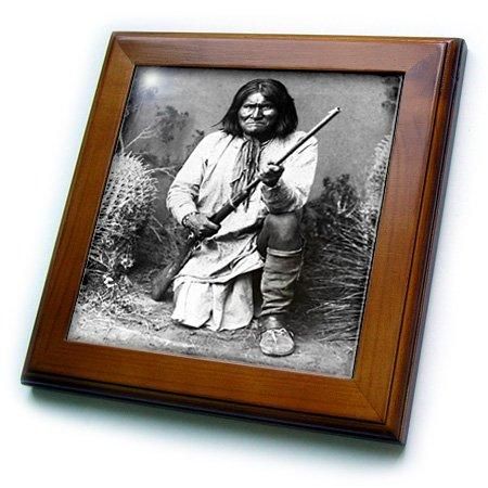 8x8 Framed Tile - 3dRose ft_98646_1 Vintage Photo of Geronimo in Black and White