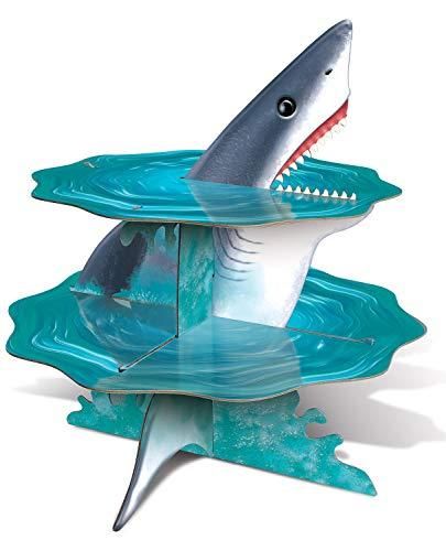 Beistle シャークカップケーキスタンド センターピース ルアウ 海辺 パーティー用品 誕生日デコレーション 14インチ x 14インチ ブルー/グレー/ホ