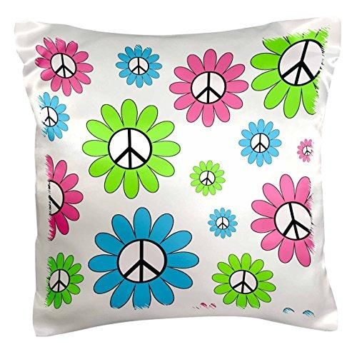 3dRose pc_164553_1 ガーリーピンク ライムとブルー ピースサイン フラワーピローケース 40.64cm x 40.64cm