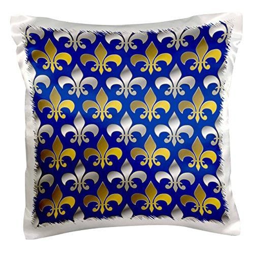3dRose pc_171858_1 ゴールドとシルバーカラー フルール・ド・リス パターン ロイヤルブルー 背景 枕カバー 16 x 16インチ