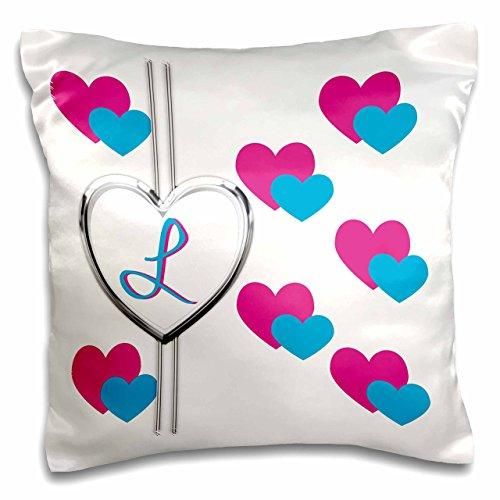 Charlyn Woodruff??CWデザインモノグラム??ハート??楽しいカラフルなピンクとブルーハートパターンモノグラムL文字??枕ケース 16 by 1