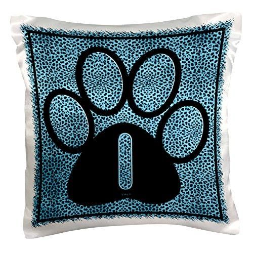 Doreen Erhardtモノグラムコレクション??Letter I Blue Cheetah Print Cat Paw??枕ケース 16x16 inch