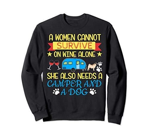 Woman Cannot Survive Without Dog Wine Camper Tee Pug Sweatshirt