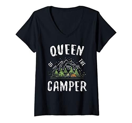 Womens Queen Of The Camper T-Shirt Camping Gift Shirt V-Neck T-Shirt