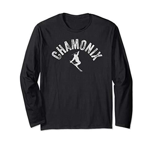 Ski Chamonix Mont Blanc Skier France Vintage Skiing Europe Long Sleeve T-Shirt