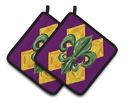Caroline 's Treasures Mardi Gras Fleur De Lisパープルグリーン&ゴールドのペアポットホルダー8133pthd、7.5