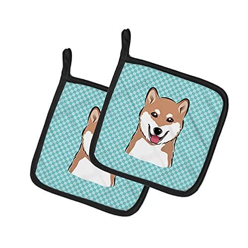 Caroline 's Treasures Checkerboardブルー柴犬のペアポットホルダーbb1163pthd、7.5hx7.5?W、マルチカラー