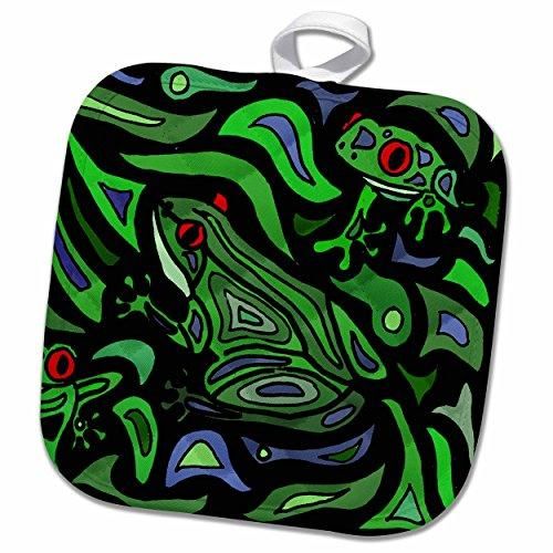 3drose All Smilesアート抽象??Fun Frogsアート抽象元??鍋つかみ 8 x 8 phl_200600_1