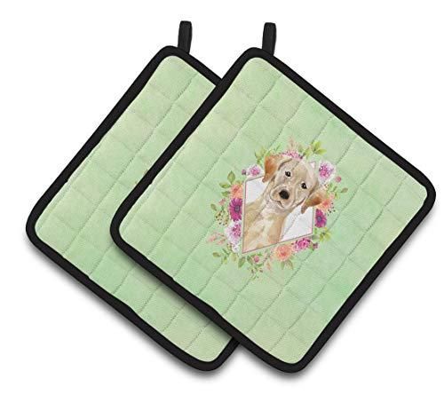 Caroline's Treasures CK4387PTHD Yellow Lab Green Flowers Pair of Pot Holders pot