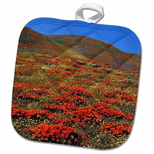 3dローズUSAテハチャピmountains-california Poppiesポットホルダー、8?x 8?