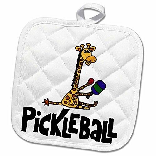 3drose All Smilesアートスポーツおよび趣味??Funny Giraffe Holding Pickleballパドル??鍋つかみ 8 x 8 p