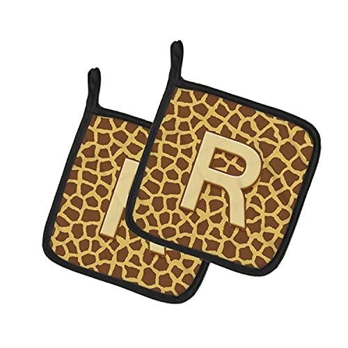 Caroline 's Treasuresモノグラム初期Rキリンのペアポットホルダーcj1025-rpthd、7.5hx7.5?W、マルチカラー