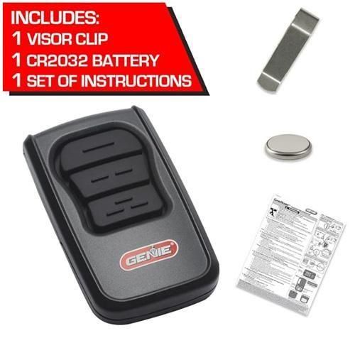 Genieガレージドアオープナー、Intellicodeデュアル周波数315/390MHzリモコン、3ボタントランスミッターについてGenieガレージドアオープナー、Intellicodeデュアル周波数315/390MHzリモコンは、3ボタン機能を備えています。