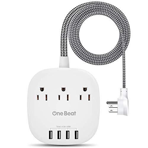 Desktop Power Strip with 3 Outlet 4 USB Ports 4.5A Flat Plug and 5 ft Long Braid