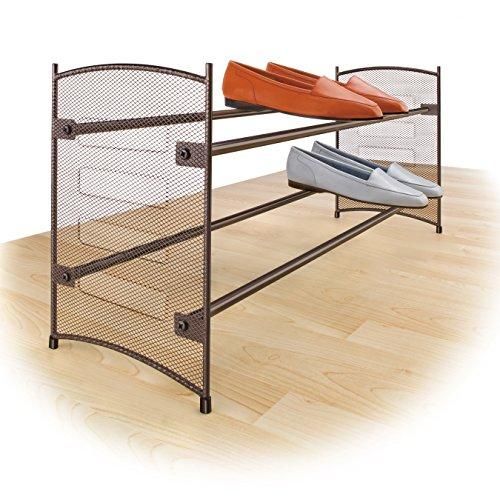 Lynk Expandable 2 Tier Stackable Shoe Rack - Steel Mesh Shoe Shelf - Bronze