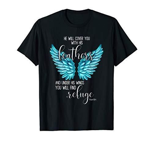 He Will Cover You With His Feathers - Bible Verse Psalm 914 T-Shirt