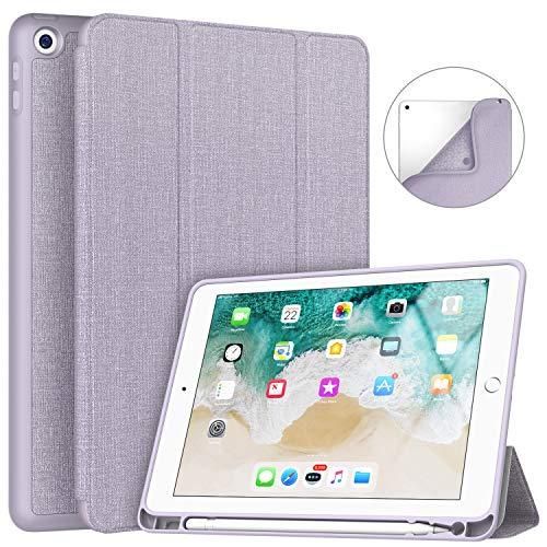 Soke iPad 9.7 2018/2017用 ケース ペンシルホルダー付き スマートiPadケース 三つ折りスタンド付き 耐衝撃ソフトTPU製背面カバー 自