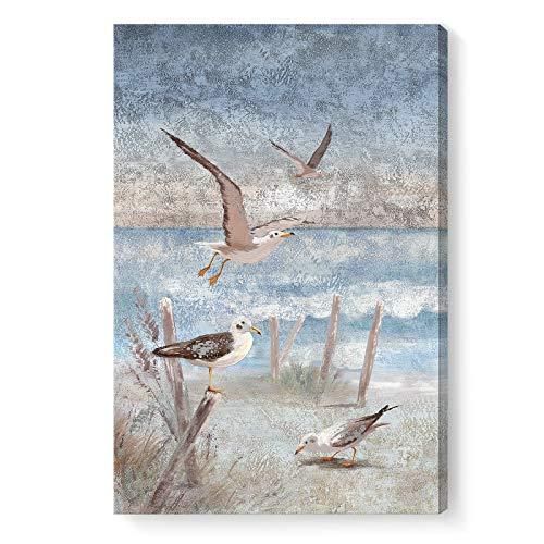 オーシャンビーチ キャンバス ウォールアート 抽象 海の景色 絵画 パーチングバード 海の海岸 テーマ 写真 枠張り アートワーク オフィス バスルーム 寝室