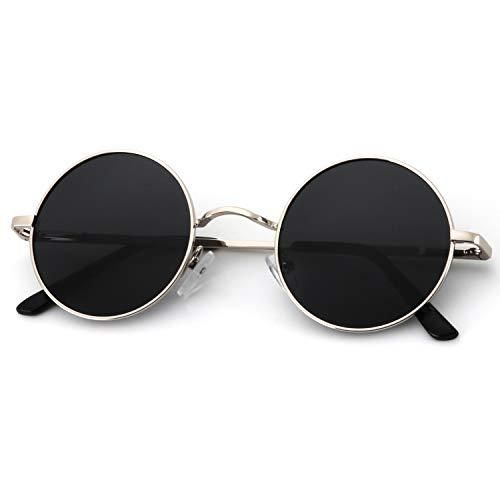 Round Polarized Sunglasses for Men Women Small Retro Metal John Lennon Style 45m