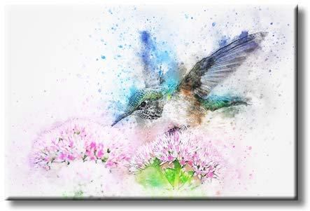 美しい尾のエメラルド ハチドリ ピンクの花をフィーディングするデザイン ストレッチキャンバス上の絵 ウォールアート装飾 すぐに掛けられます