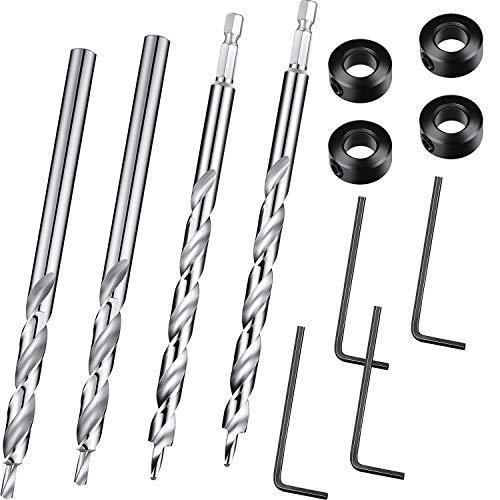 4 Pieces 3/8 Inch Pocket Hole Drill Bit with Depth Stop Collar 1/4 Hex Shank and