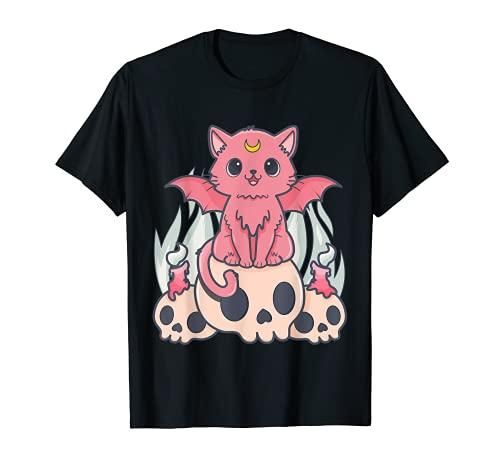 Kawaii Pastel Goth Cute Creepy Demon Cat and Skull Anime Art T-Shirt