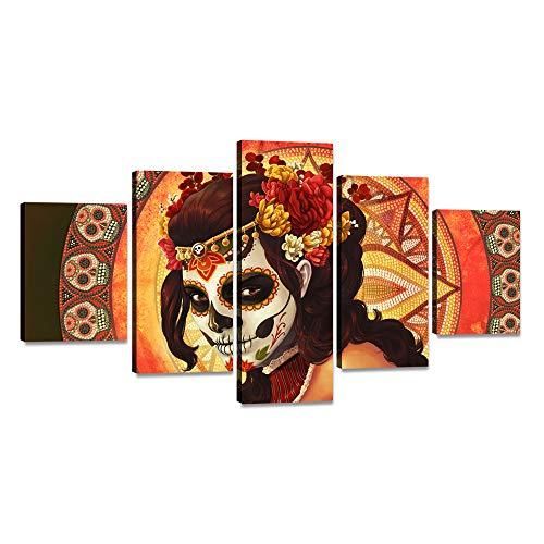 Suger Skull Girl Dead面キャンバスの絵画5パネル 60''Wx32''H