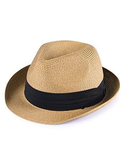 FURTALK Fedora Straw Sun Hat for Men Women Foldable Roll Up Short Brim Trilby Ha