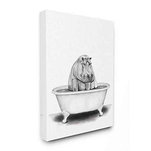 Stupell Industries カバ おもしろアニマル 浴室 絵画 16x20 ベージュ aa-185_cn_16x20