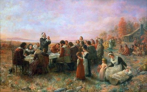 The First Thanksgiving Nat Plymouth Massachusetts 油絵 キャンバス 1914 ジェニーによる A Browns