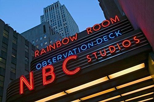 ニューヨーク市ロックフェラーセンターのNBCスタジオとレインボールームのネオンライトポスター Panoramic Imagesによるプリント 36 x 24