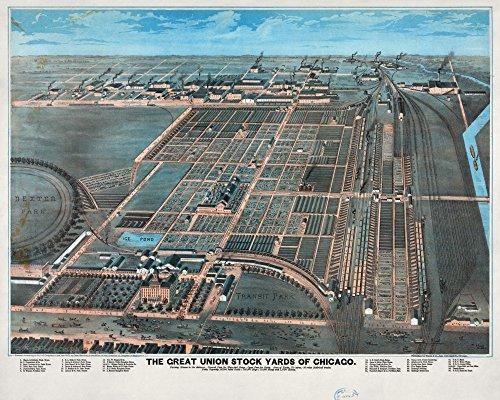 シカゴ ストックヤード 1878 NThe Great Union Stock Yards Of Chicago Map by Charles Rascher
