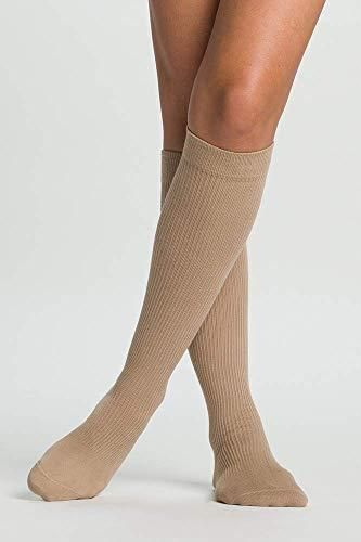 Women's Casual Cotton 15-20mmHg Closed Toe Knee High Sock Size C 10-12 Color Kha
