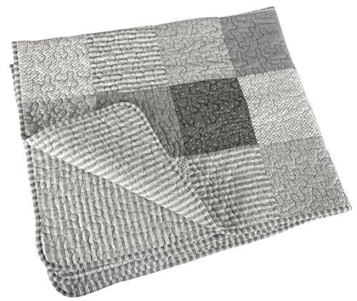 Stephan Baby Heirloom-Quality Pieced Crib Quilt Gray and White Stripes and Dots