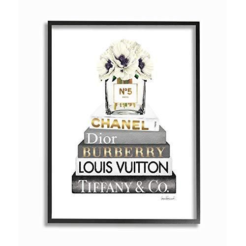 Stupell Industries ブルーミングホワイトフローラルディスプレイ グラムデザイナーブックスタック ウォールアート 11 x 14