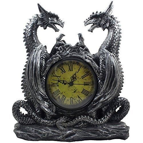 Mythical Dragon Duo Desk Clock in Metallic Look and Antique Face with Roman Nume