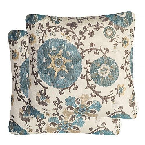 Mika Home ジャカード円形花柄スロー枕カバー 22×22インサート用装飾枕カバー クリームブルー