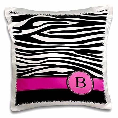 3dRose 文字 B モノグラム 白黒 ゼブラストライプ アニマルプリント ホットピンク パーソナライズイニシャルピローケース付き 16 x 16インチ pc