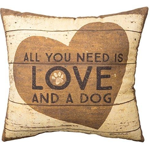 プリミティブby Kathy装飾犬ヘアクッション、16インチスクエア、クリーム