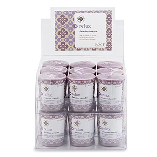 Root Candles Seeking Balance 20-Hour Votive Candles Relax Geranium Lavender Pack