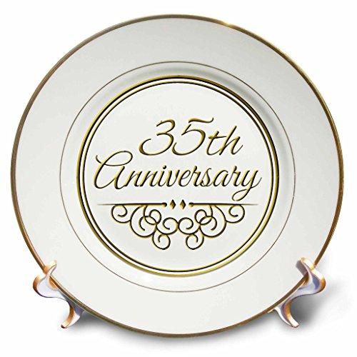 3dRose cp_154477_1 35周年記念ギフトゴールドテキスト 結婚記念日35周年記念 結婚記念 磁器プレート 8インチ